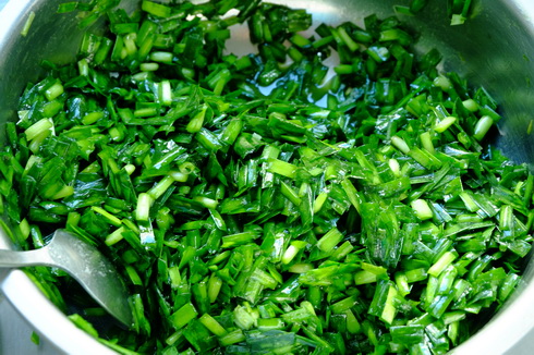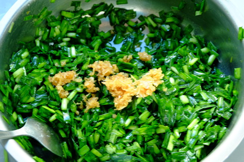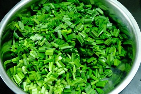 2. เตรียมใบกุ้ยช่าย ล้างน้ำให้สะอาด โดยเฉพาะตรงโคน มันจะมีเศษๆ ติดอยู่ ให้ล้างให้สะอาด ใบไหนดูเน่าเหลืองก็เอาออก