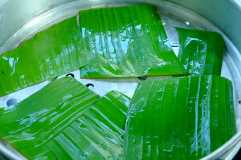 9. ตั้งซึ้งไว้ น้ำเดือด แนะนำว่า หาใบตองมารองจะเป็นอะไรที่ดีที่สุด และน่าจะจำเป็นมากๆ มิเช่นนั้น กุ้ยข่ายจะติด