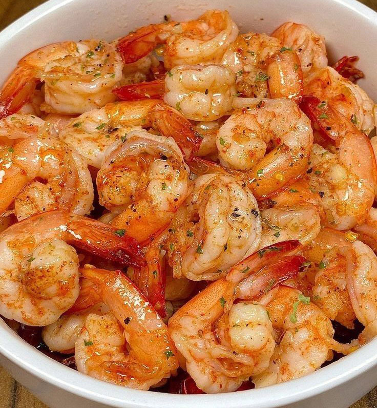 -เมื่อกุ้งสุกทั่วแล้ว ตักใส่จานและตกแต่งด้วยผักชีสับ